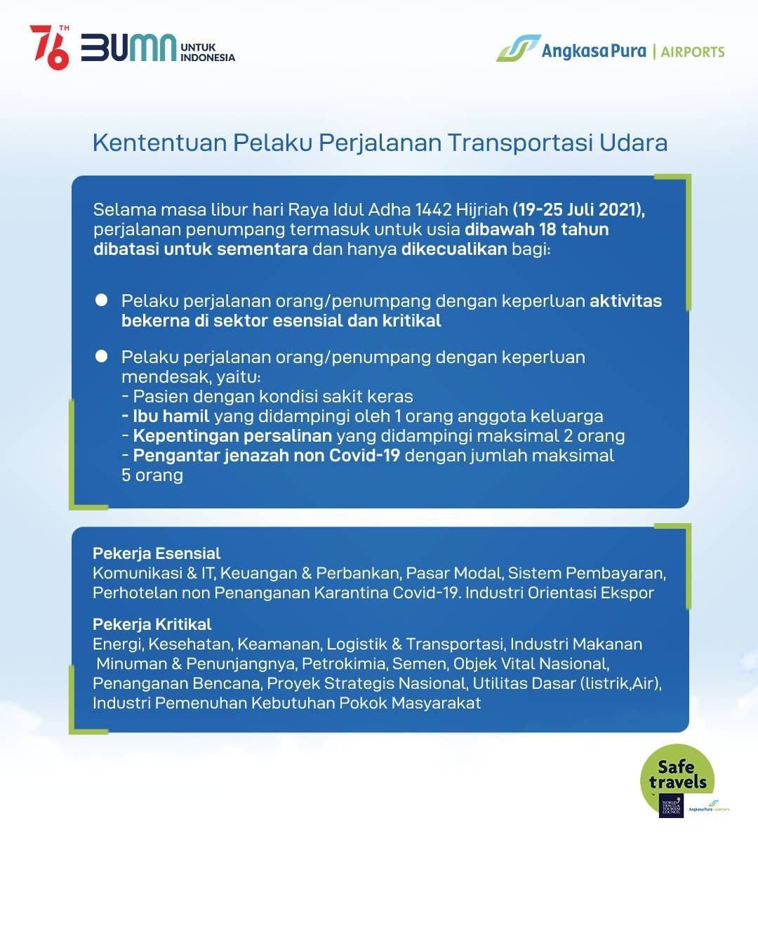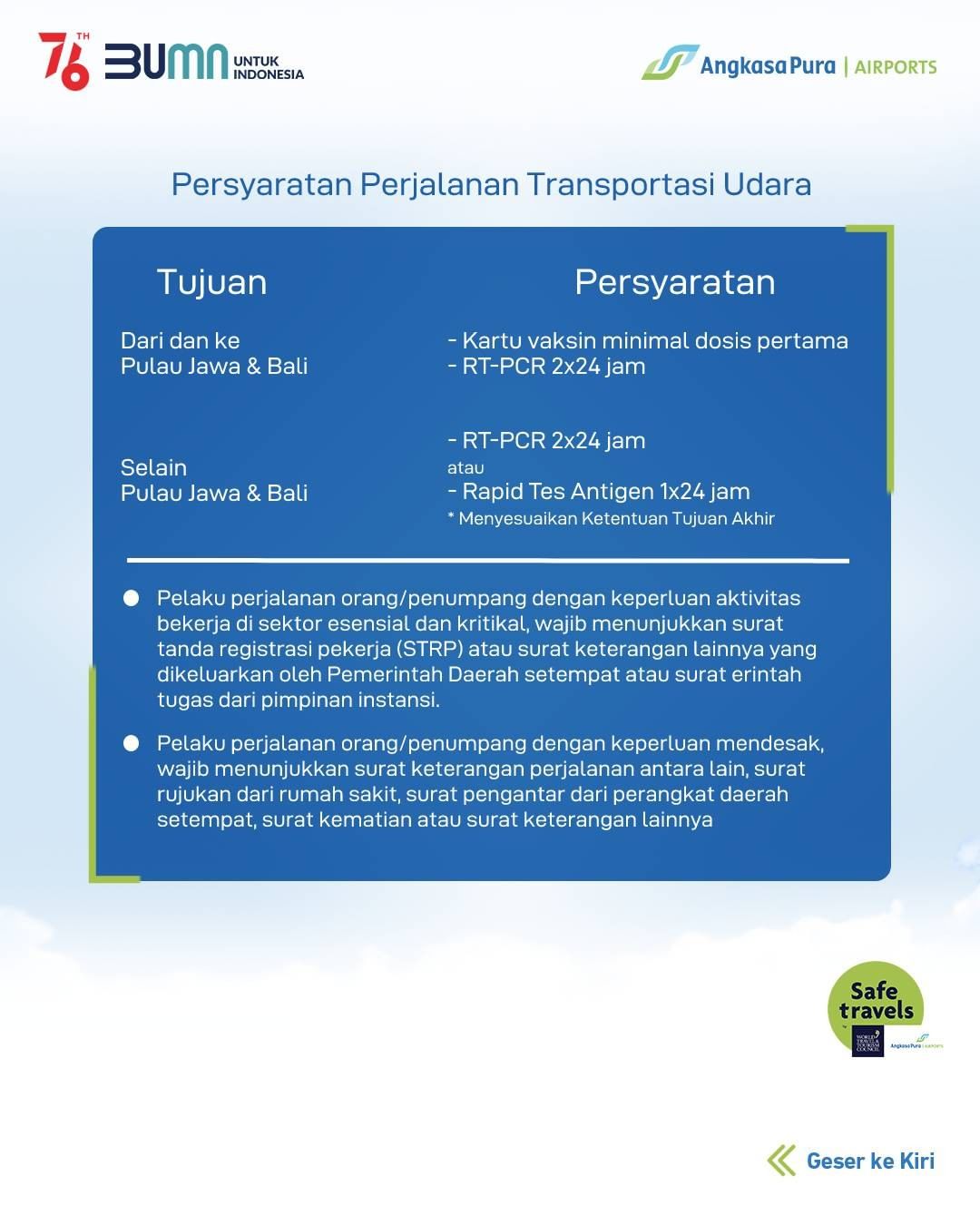 Sebelum melakukan perjalanan, pastikan Sahabat telah memahami dan mempersiapkan syarat dan ketentuannya selama periode tersebut.