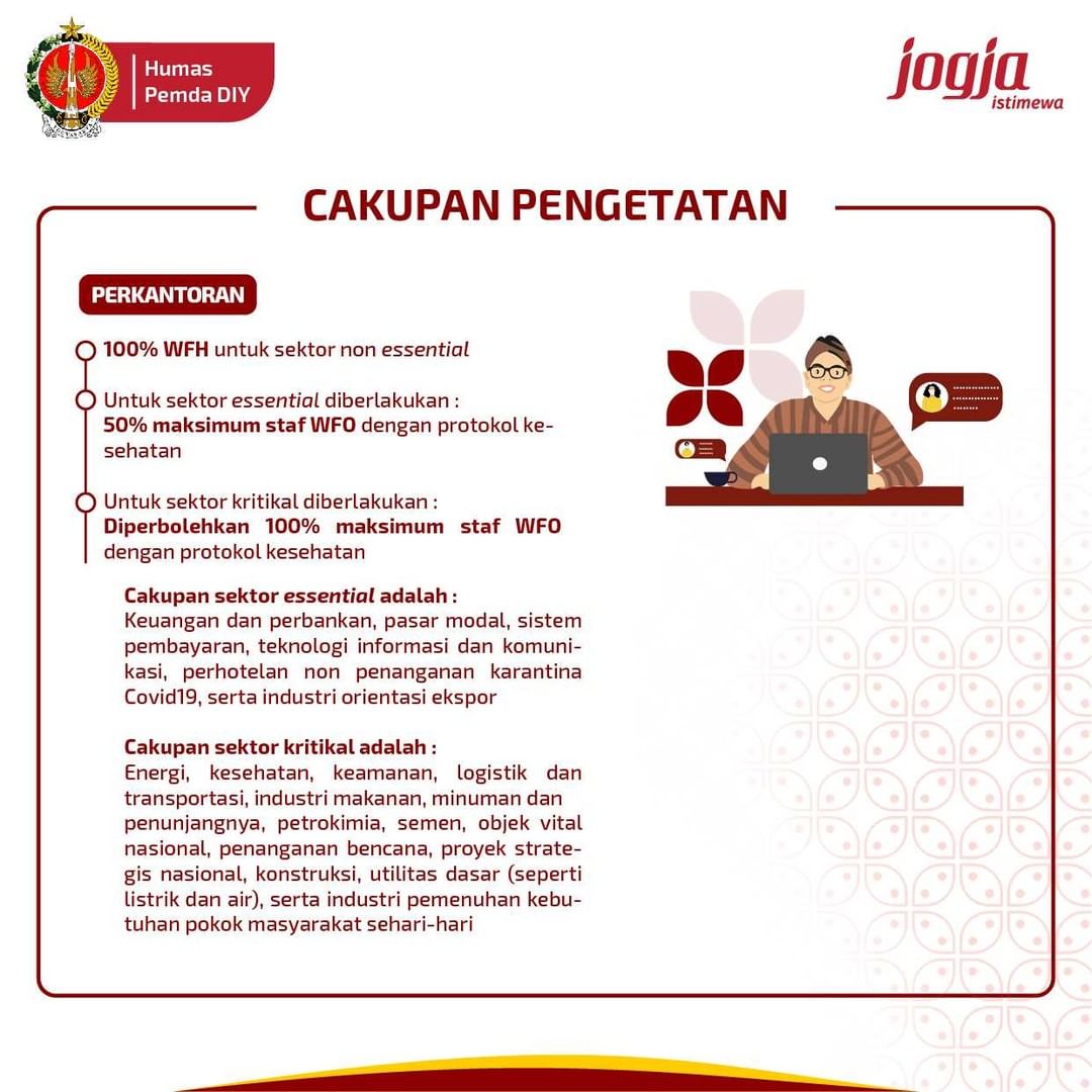 Gubernur DIY Sri Sultan Hamengku Buwono X telah resmi mengeluarkan Instruksi Gubernur DIY No.17/INSTR/2021 tentang Pemberlakuan PPKM Darurat di Daerah Istimewa Yogyakarta. Instruksi yang berlaku mulai 3-20 Juli 2021 ini merupakan impelementasi atas Instruksi Mendagri No.15/2021 yang mengatur pemberlakuan PPKM Darurat se-Jawa Bali. Terdapat 15 poin yang diatur pada instruksi tersebut dengan perincian terlampir.