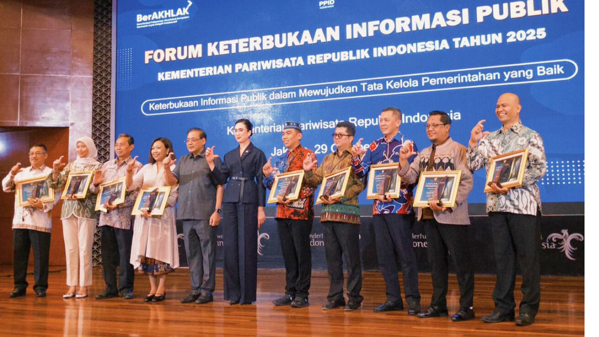 Jumat, 31 Oktober 2025Jakarta, 29 Oktober 2025 — Kementerian Pariwisata (Kemenpar) Republik Indonesia kembali menegaskan komitmennya terhadap tata kelola pemerintahan yang baik melalui penyelenggaraan Anugerah Monitoring dan Evaluasi (Monev) Pengelolaan Informasi Publik Tahun...