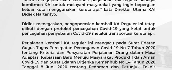 mulai tanggal 12 Juni 2020, KAI kembali melayani masyarakat dengan [...]